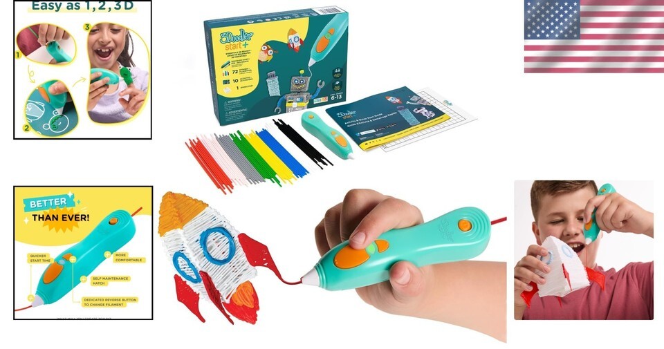 Complete Kit: Includes everything you need ? a Start 3D Pen, DoodlePad/Doodlemat, a mixed-color Start+ plastics set (72 strands), a USB-C cable, and a vibrant activity guide.