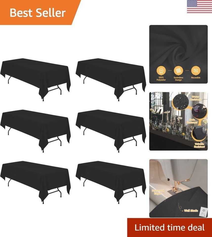 6 Pack Black s for 8 Foot Rectangle Tables 60 x 126 Inch - 8ft Rectangular Bulk Linen Polyester Fabric Washable Long Clothes for Wedding Reception Banquet Party Buffet Restaurant