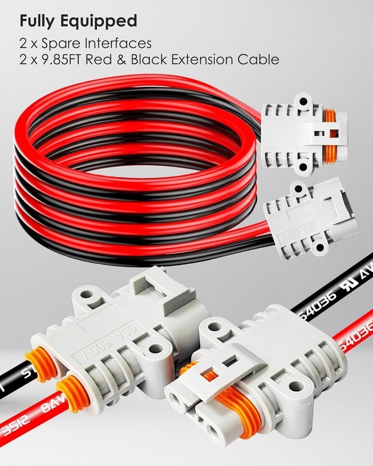Full Set of Accessories: In addition to the pre-equipped wiring and interfaces, controller is equipped with 2 pcs additional spare interfaces and 2 pcs high-quality 8AWG extension wires. These wires can withstand higher current and power, allowing for flexible wiring based on specific requirements without additional purchases or waiting