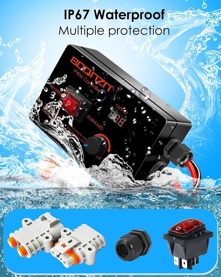 Pre-wired Design: Motor speed controllers are pre-equipped with connection wires and waterproof connectors, which can be directly connected quickly. Eliminating the need to wire or find terminals, reducing the risk of wiring errors and providing reliable connections, saving time and effort