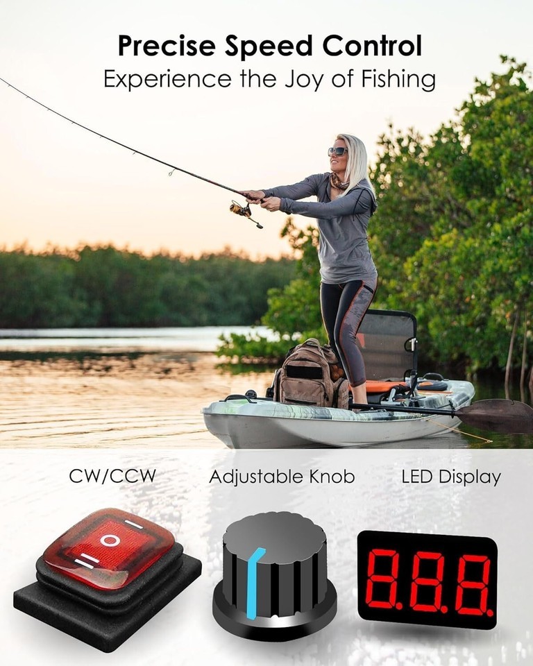 Precise Speed Control: The controller equipped with an adjustable speed knob and LED display, it can finely adjust the propeller speed of the trolling boat according to needs, ensure the best results in different fishing need. It can clearly see the speed percentage, intuitively monitor the running status of the motor, and then achieve better control and fuel saving