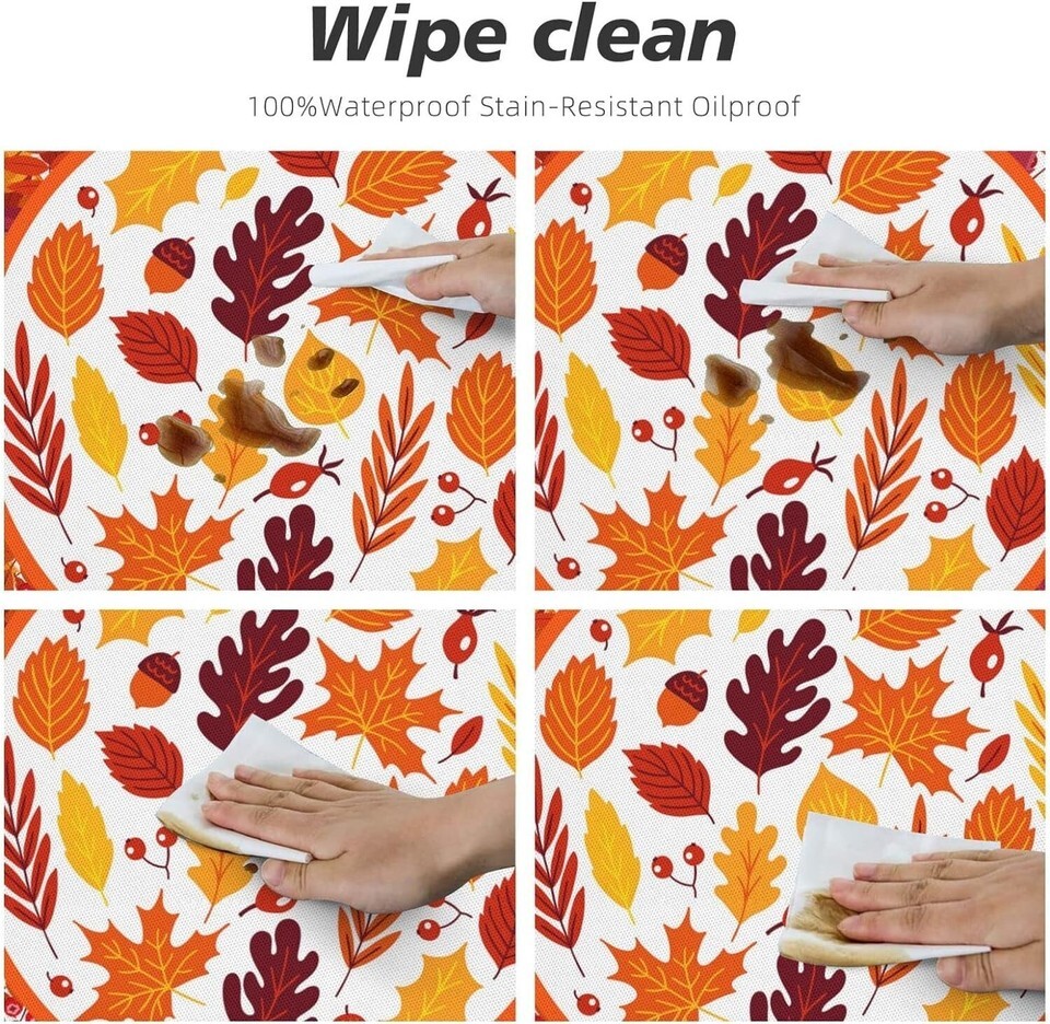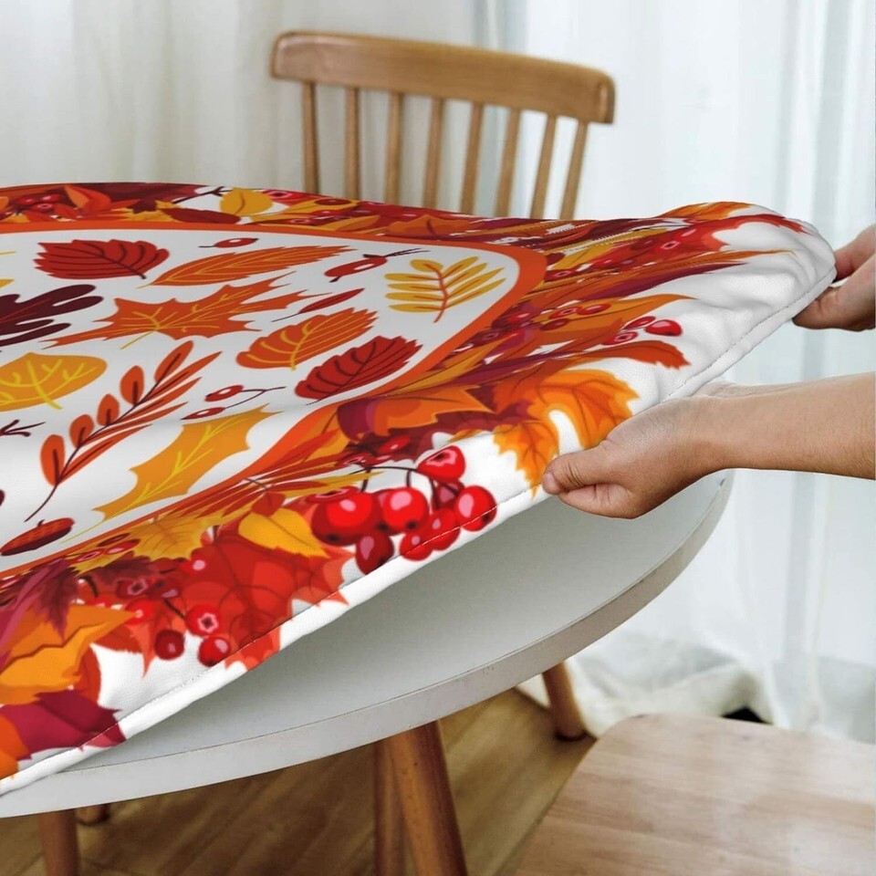 Fall tablecloth: Round elastic tablecloth use polyester material, classic colors design gives it a simple and elegant appearance, it feels warm and soft, home kitchen tablecloth and can be washed