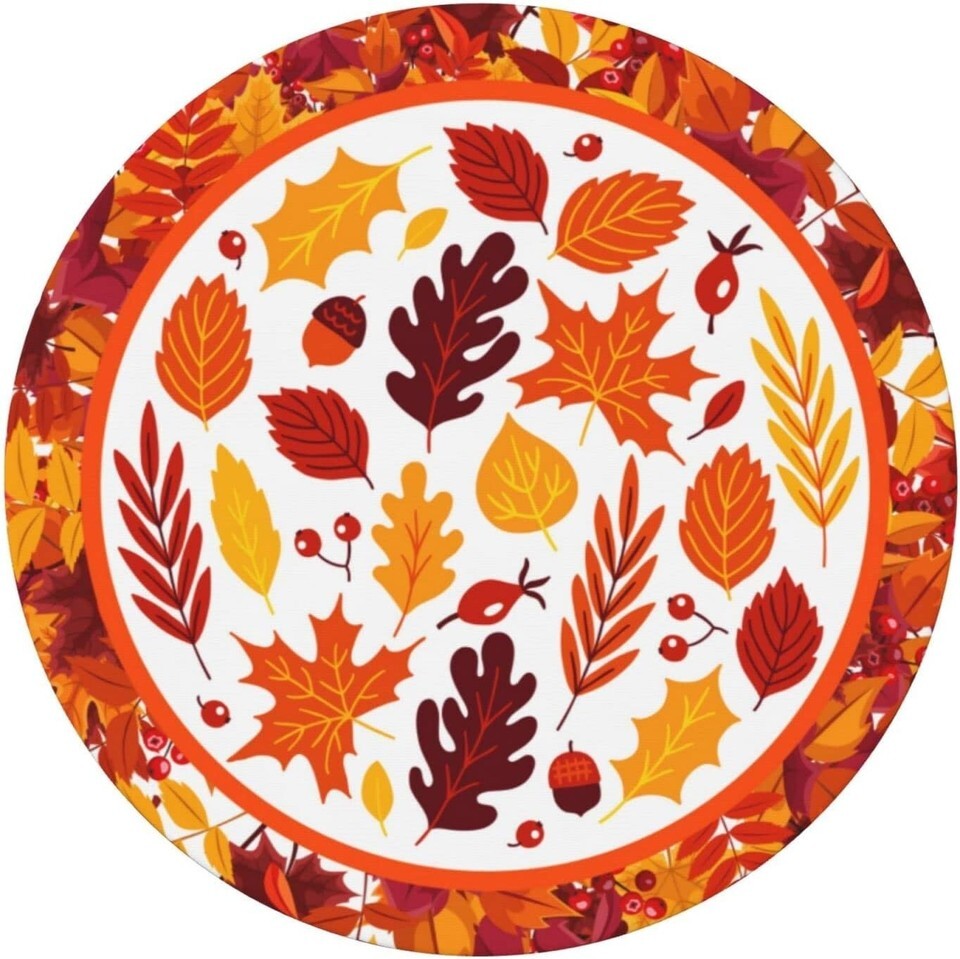 Autumn Maple Leaves Round Tablecloth Elastic Fitted Table Cover Washable Elas...
