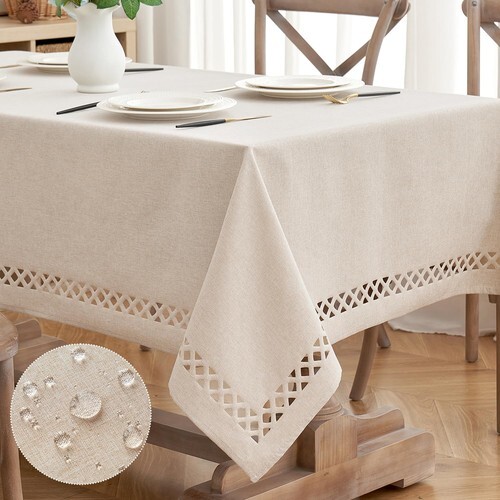 Easy to clean: fitted round tablecloth with elastic, material can be wiped clean or machine washed on gentle cycle, tumble dry low and low iron if needed; use again and again