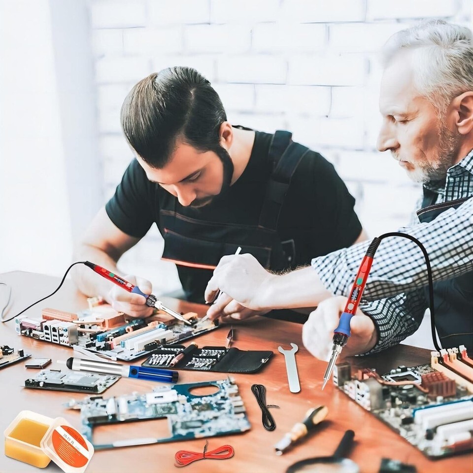 ? ?Must-have Soldering Iron Kit?Kit Includes soldering iron, 5PC Soldering Iron Tip, soldering iron stand, conventional sponge, solder wire, 50g no-clean solder rosin flux paste.
