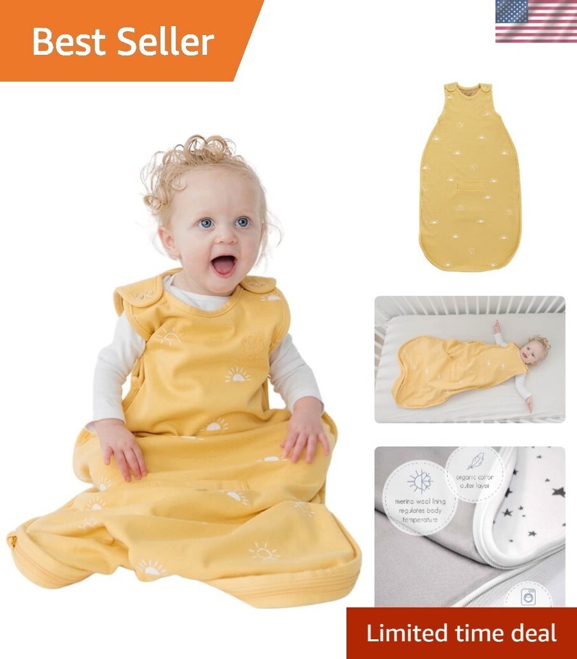 4 Season Baby Sleep Sack - Ultimate Merino Wool and Organic Cotton Baby Sleeping Bag - Two-Way Zipper Adjustable Universal Size Sleep Sack for Baby 2-24 s - Sun