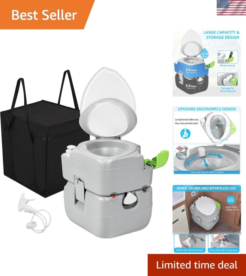 Elegant 5.8-Gallon Portable Toilet with Diagonal Bowl Hand Sprayer for Camping