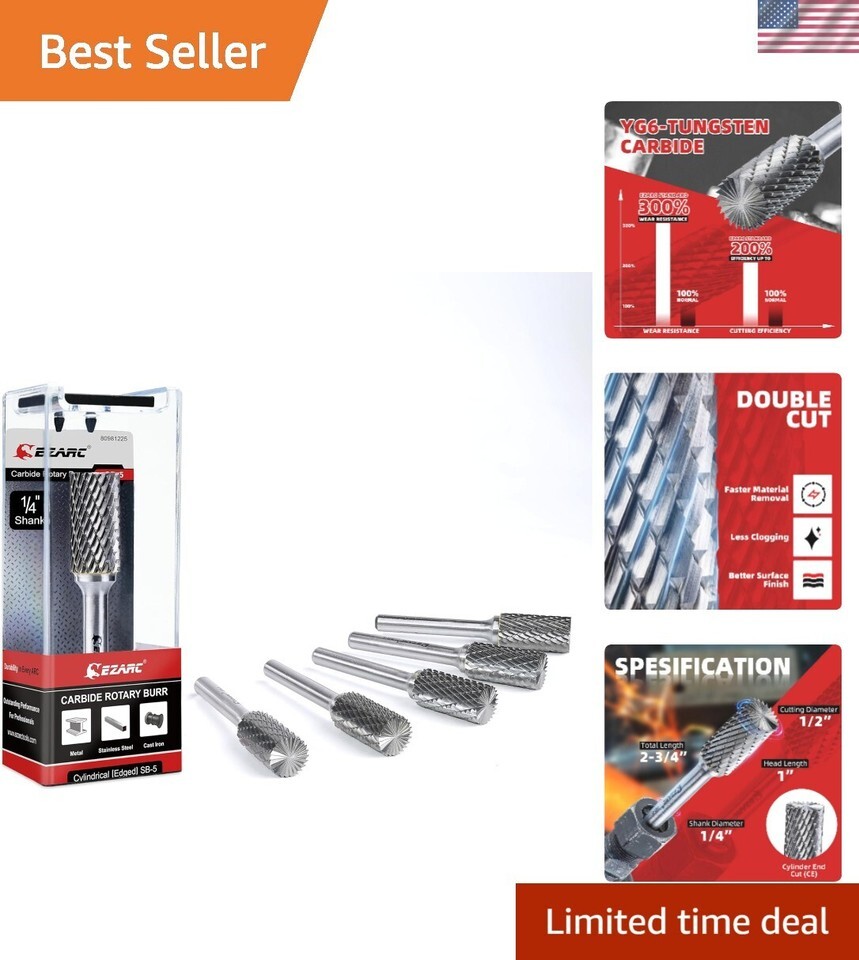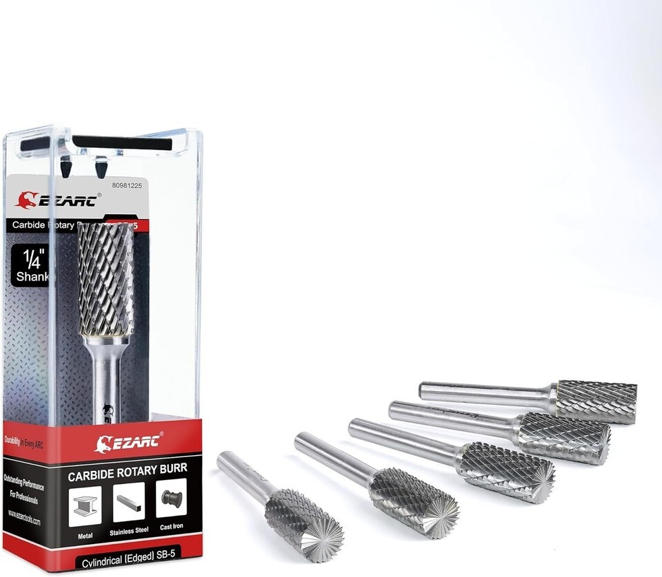 5PCS Tungsten Carbide Rotary Burr Set, SB-5 Double Cut Carbide Burr 1/4" Shan...