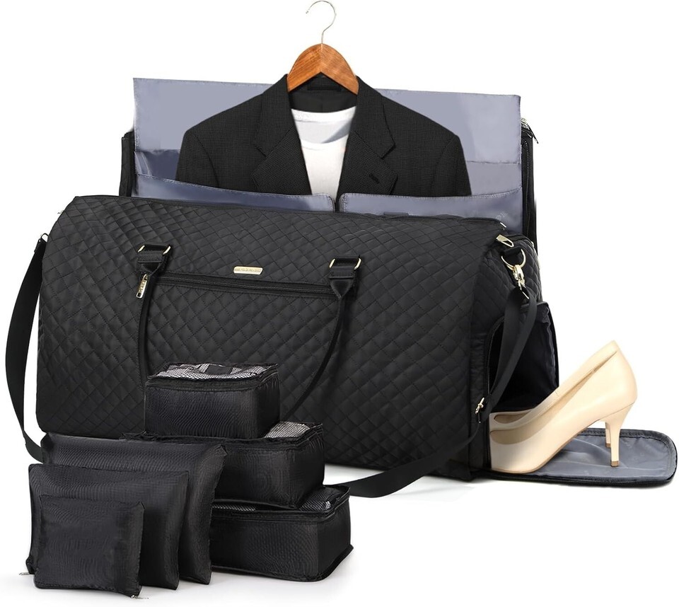 Garment Bags with 6 Set Packing Cubes, Garment Convertible Weekender Bag for Women, Large Carry On Garment Bags for Travel, Duffle Bag Garment Bag Gifts Black Color