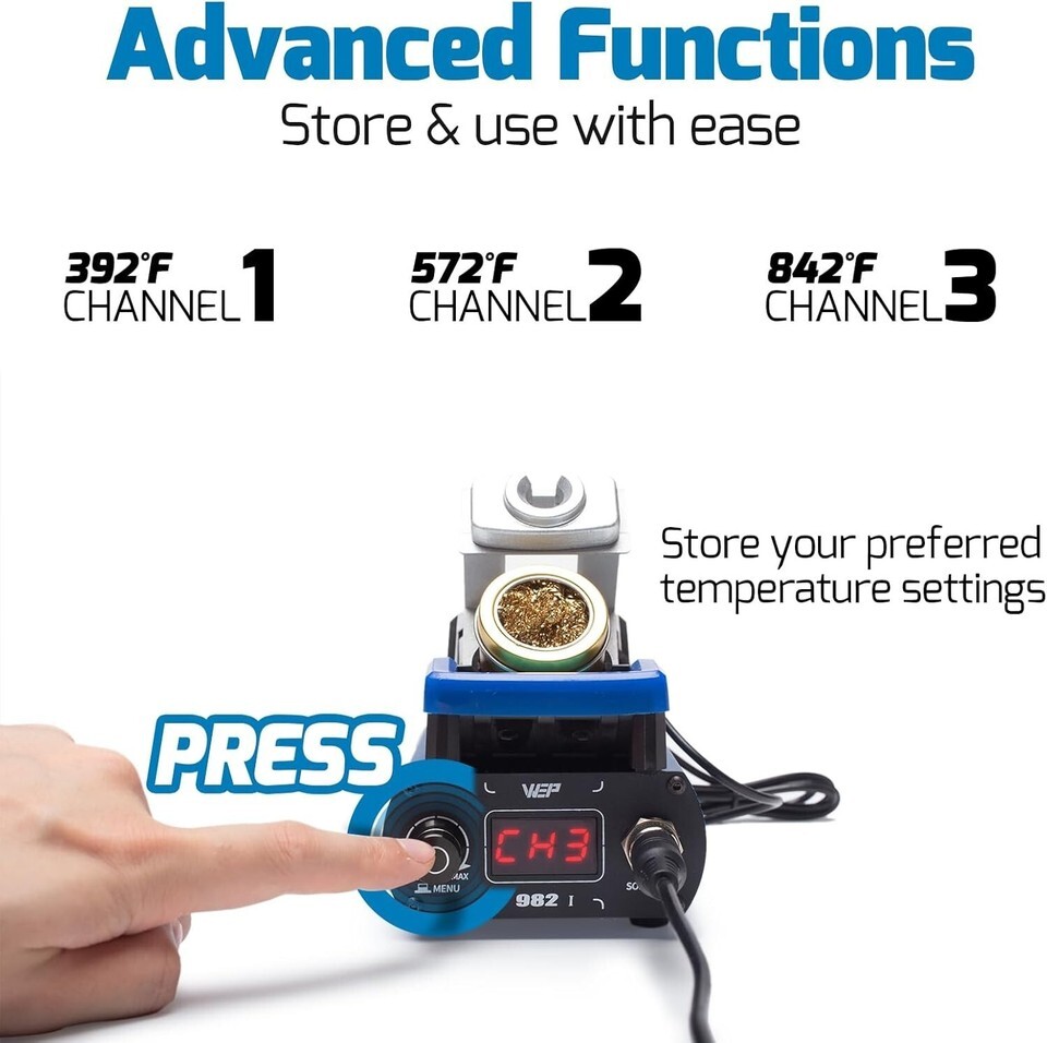 982-I Precision Soldering Iron Station with Temperature Control, Preset Channels, C-F Conversion, Sleep Mode, Automatic Shutdown, Calibration Functions C210 Compatible Soldering Tips