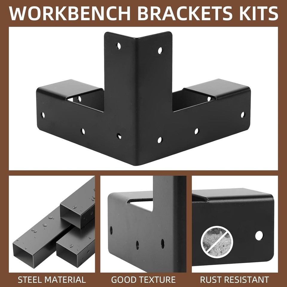 YOU WILL GET: 8 x steel corner brackets, 96 x screws. Our workbench brackets kit has pre-drilling holes, easy to build and support a work bench as you needs. Easy to install.