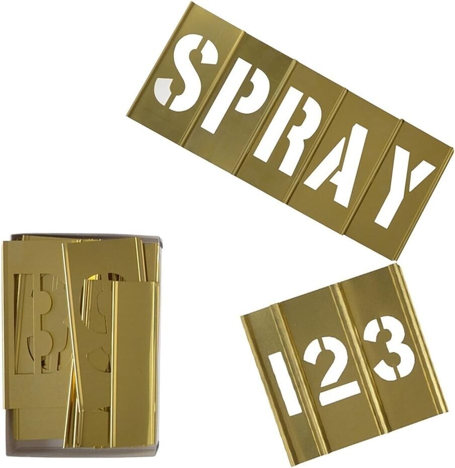 Manufactured from Brass these stencils are robust and hard wearing Plus are solvent resistant and will not deteriorate with regular use. Product Features: - 100% product new and high quality brass - Color: Yellow - Overall Height: 6", Max Width 3-7/8",Character Height: 4" - Character: A Thru Z, 0 Thru 9, Punctuation - Character Type: Letters, Numbers, Punctuation Package Includes Letter: All letters (26pcs A-Z) Number: 1 2 3 4 5 6 7 8 9 0 0