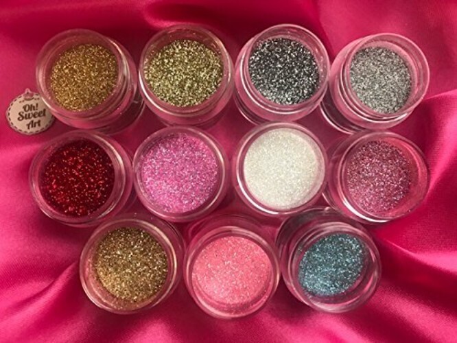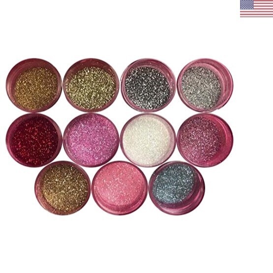 Pack x 11 Units (5g each) 55g in Total CHRISTMAS RED, SOFT GOLD CHAMPAGNE, GOLD HOLOGRAM, PINK ROSE, GLAMOROUS PINK, AMERICAN GOLD, SEA WATER BLUE, RAINBOW, PINK HOLOGRAM, AMERICAN SILVER, SILVER HOLOGRAM.