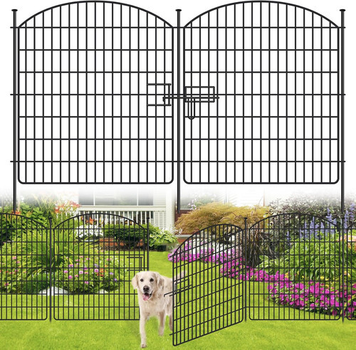 48 inH Garden Fence, Low Threshold Door, Yard Fence for Dogs, 4 Panels Total ...