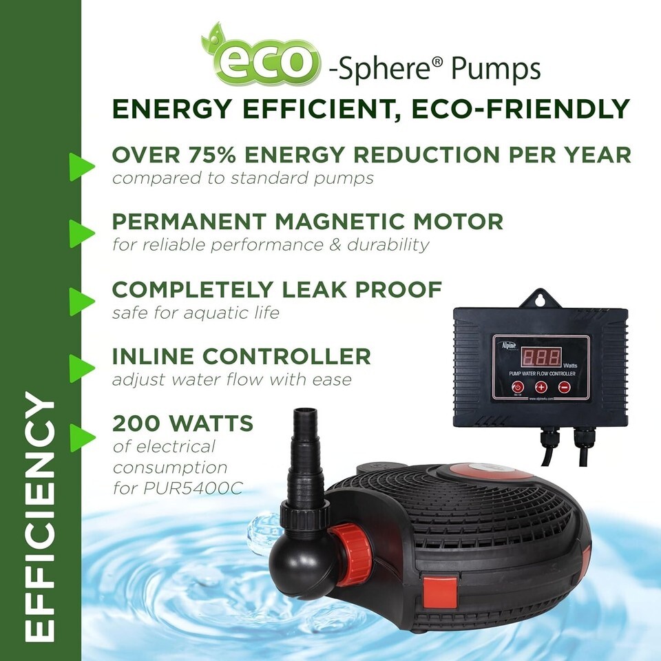 Eco-Sphere Energy-Saving 5400GPH Pond Pump with Controller and 33-ft. Cord