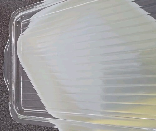 The clear glass lid has rough spots of glass chipped away on the underside (see photos)