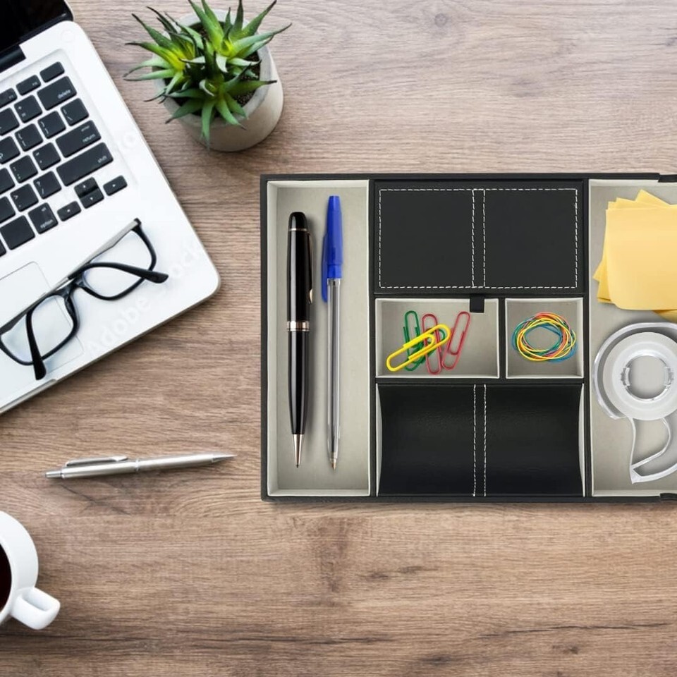 Classy storage space- Our edc tray's dark and sleek exterior looks suave on any bedside table, nightstand, or drawer. It's a modern and sophisticated catchall for your office or bedroom.