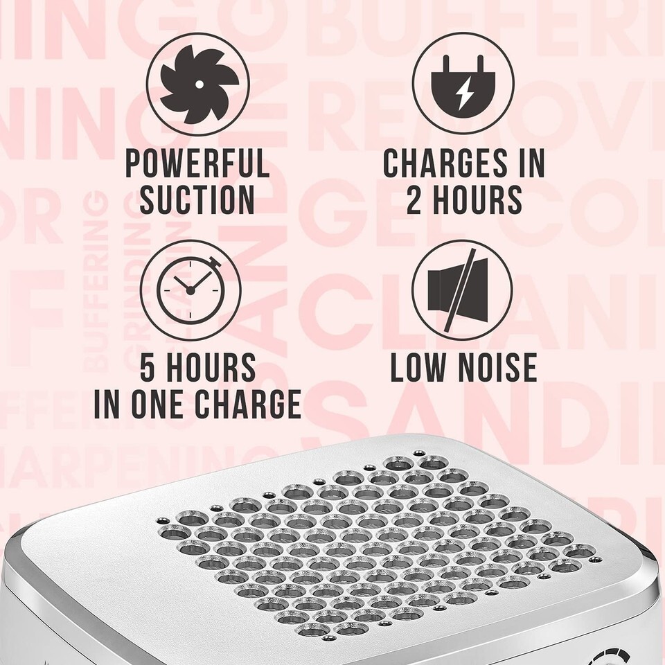 Rechargeable Nail Dust Collector: The cordless nail dust cleaner, equipped with a 2000MAH lithium battery, can operate up to hours after full charge in 100-240V, making it more convenient to DIY your nails in the clean vacuum. Perfect Mother's Day Gift.
