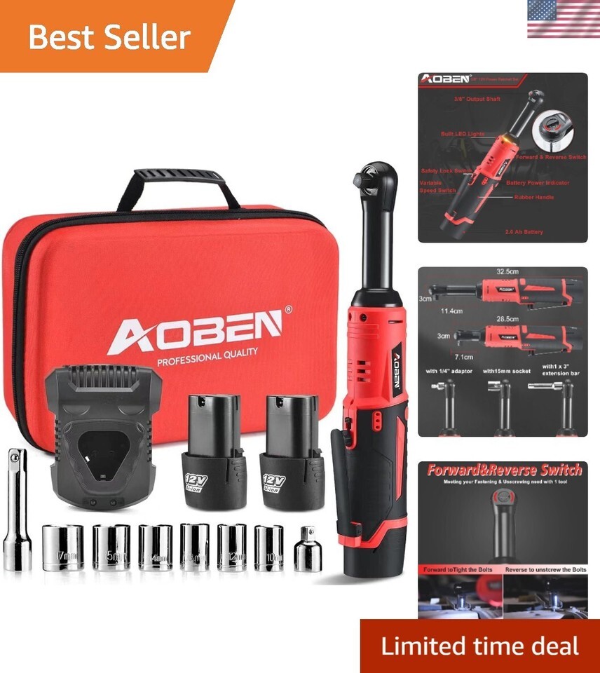 Professional 40 Ft-lbs Cordless Ratchet Wrench Set with Safety Lock & LED Light