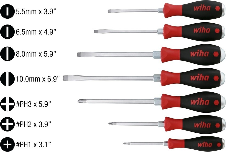 extra heavy duty seven piece slotted and phillips screwdriver set. SoftFinish cushion grip handles. Set includes slotted 53020 x 100mm, 53025 x 125mm, 53027 x 150mm and 53035 x 175mm. Phillips 53110 #1 x 80mm, 53115 #2 x 100mm and 53120 #3 x 150mm. From the Manufacturer extra heavy duty seven piece slotted and phillips screwdriver set. SoftFinish cushion grip handles. Set includes slotted 53020 x 100mm, 53025 x 125mm, 53027 x 150mm and 53035 x 175mm. Phillips 53110 #1 x 80mm, 53115 #2 x 100mm and 53120 #3 x 150mm.
