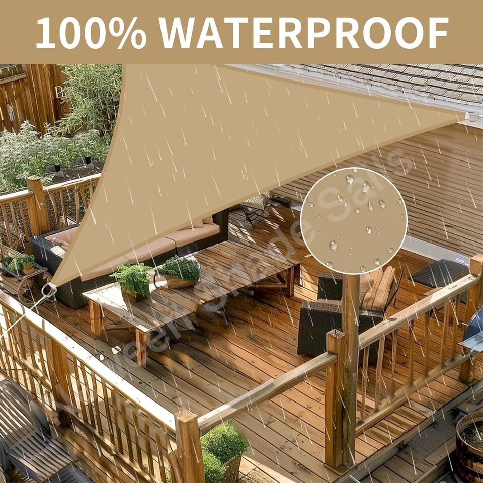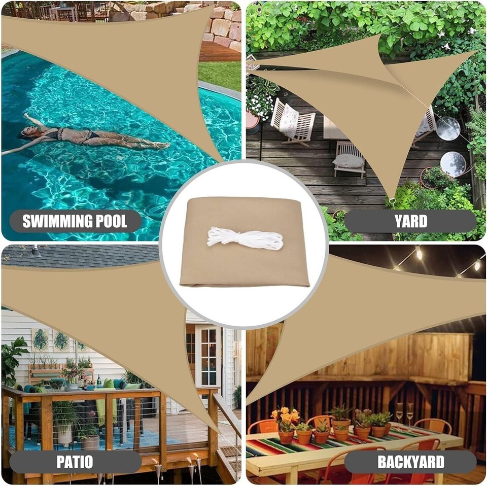 ?IP65 Water Resistant?: Triangle sun shade sail can stand up to intense sun, wind or little rain. Ideal for patio, swimming pool, balcony, carport etc.