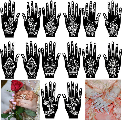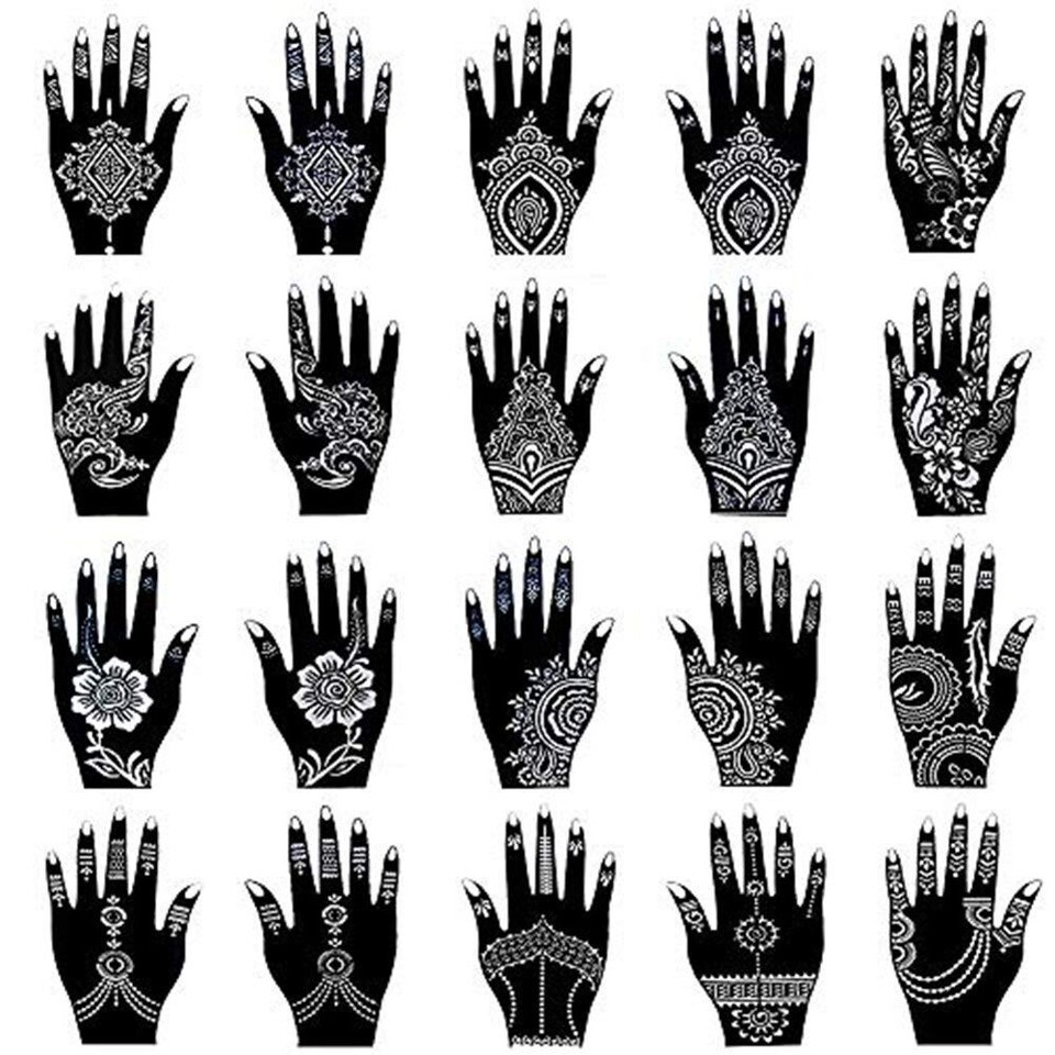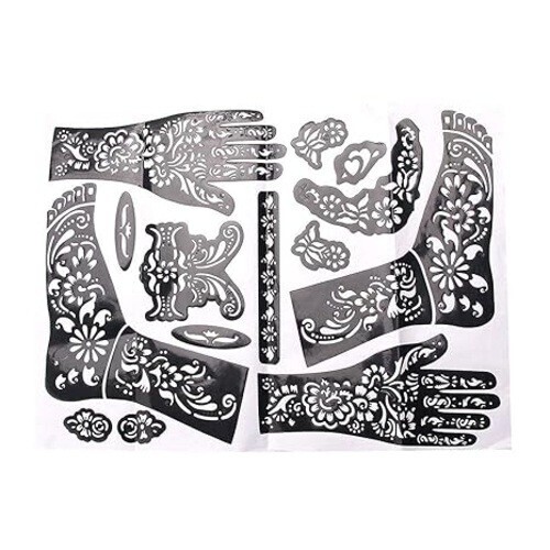 1) Package: only 20 Sheets with high-quality 3 layers PVC henna hand stencils; Safe,Washable and is not included)