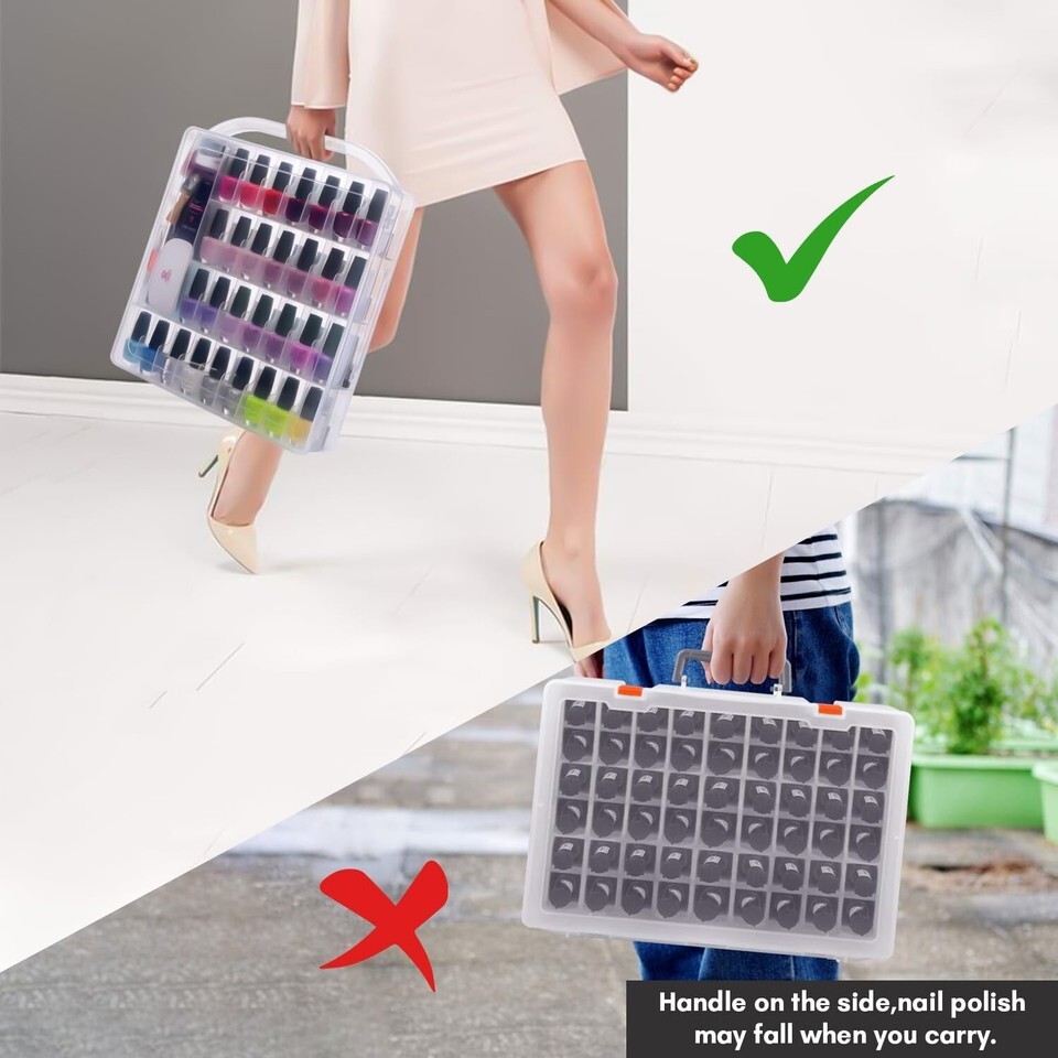 Compact Nail Polish Storage Case with Double Latch - Organizer for 60 Bottles