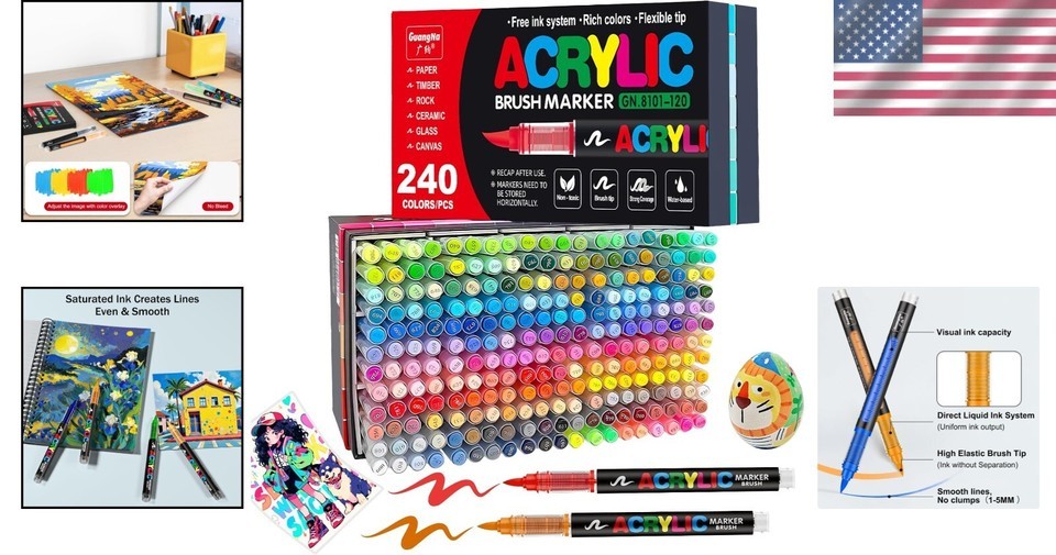 240 Colors Acrylic Paint Markers - Versatile Brush Tip Art Pens for All Surfaces