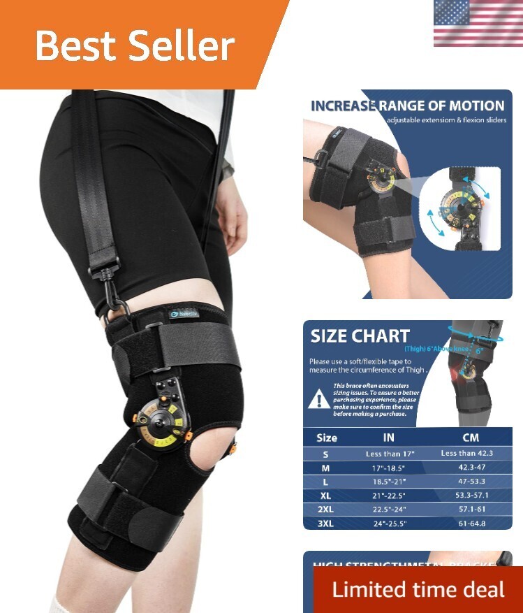 Hinged ROM Knee Brace with Shoulder Strap, Side Stabilizers & Locking Dials, ...