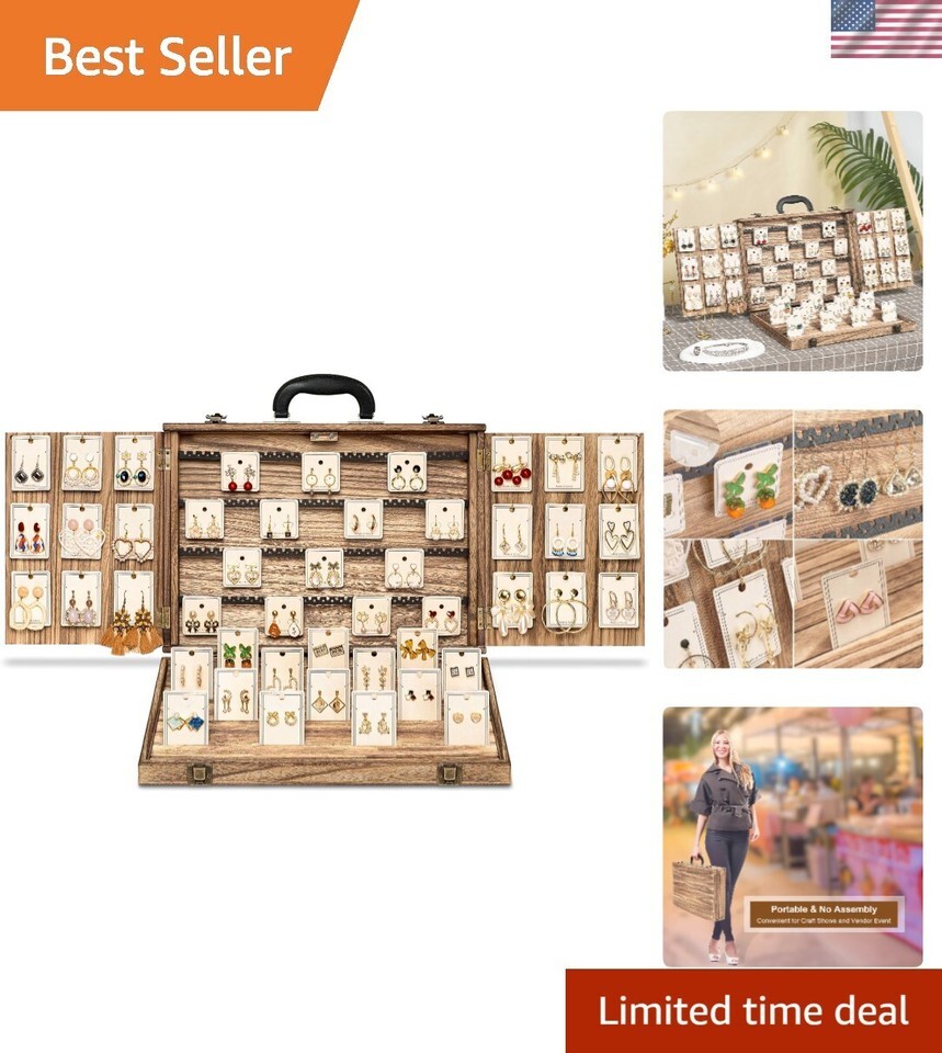 Portable Wood Jewelry Display Case, Large Capacity Jewelry Display for Sellin...