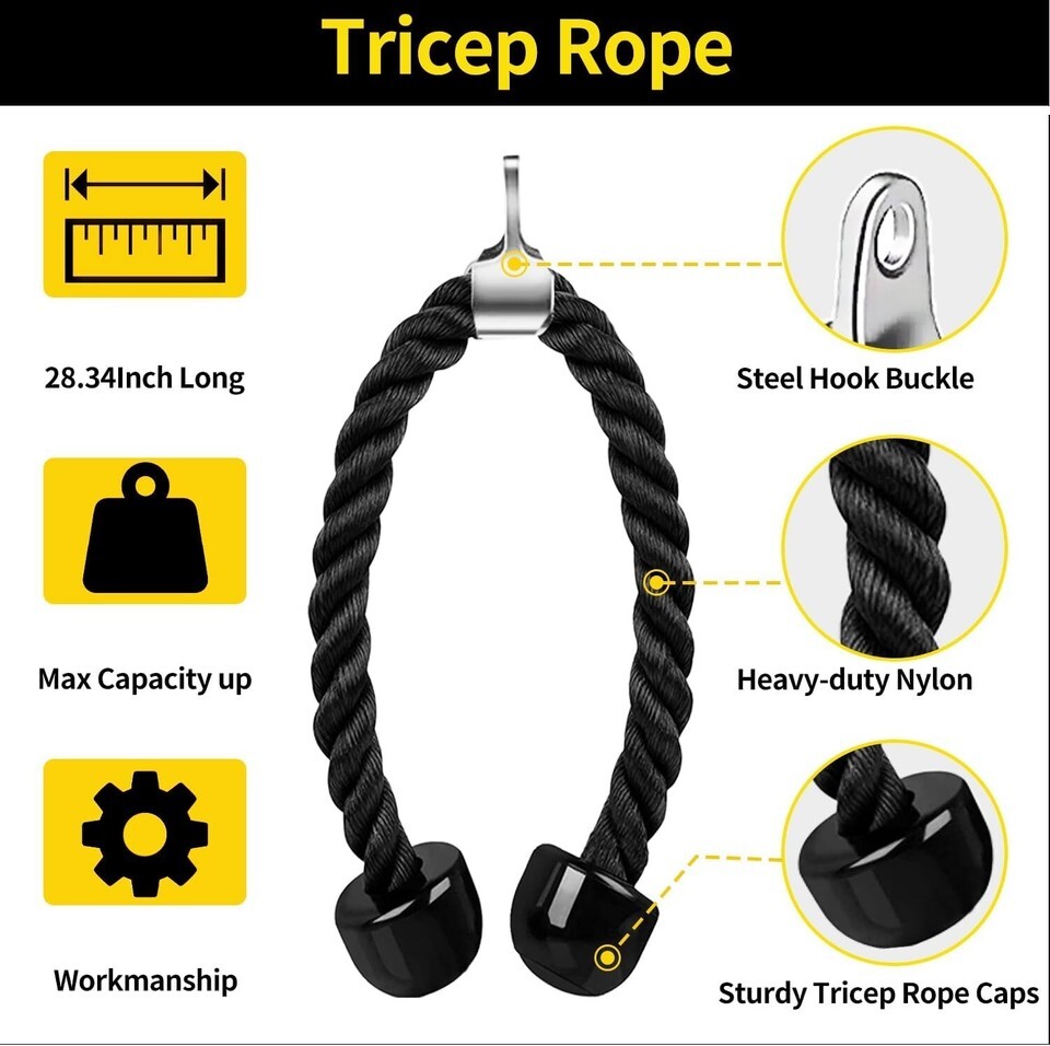 ?27? TRICEPS ROPE? - Made of strong nylon-braided rope and equipped with large plastic blocks at the end of the rope to enhance performance prevent slipping or sliding while practicing. Longer 27INCH rope and weight capacity 500LBS perfect for pull-downs, triceps press-downs, upright rows, straight bar curls, and more.