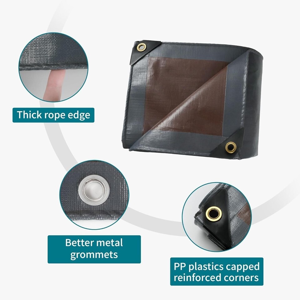 tarp 14x16 Super Heavy Duty Tarps Cover 20mil Waterproof UV Protection Rip and Tear Proof Tarpaulin with GrommetsGrey/Brown