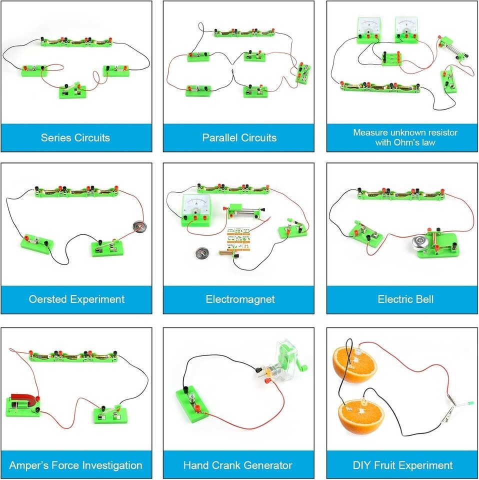 WIDE APPLICATION: The basic circuit learning STEM kit can build many different projects, such as Series Circuits, Parallel Circuits, Hand Generator, Oster Experiment, Ohm?s Law, Solenid and Ampere?s Rule, etc. It can well catch kids attention and let the them try to build, experiment and explore basic electrical simple circuits, easy to meet kids project needs, properly educating some circuit knowledge would be a good interaction time with your kids together