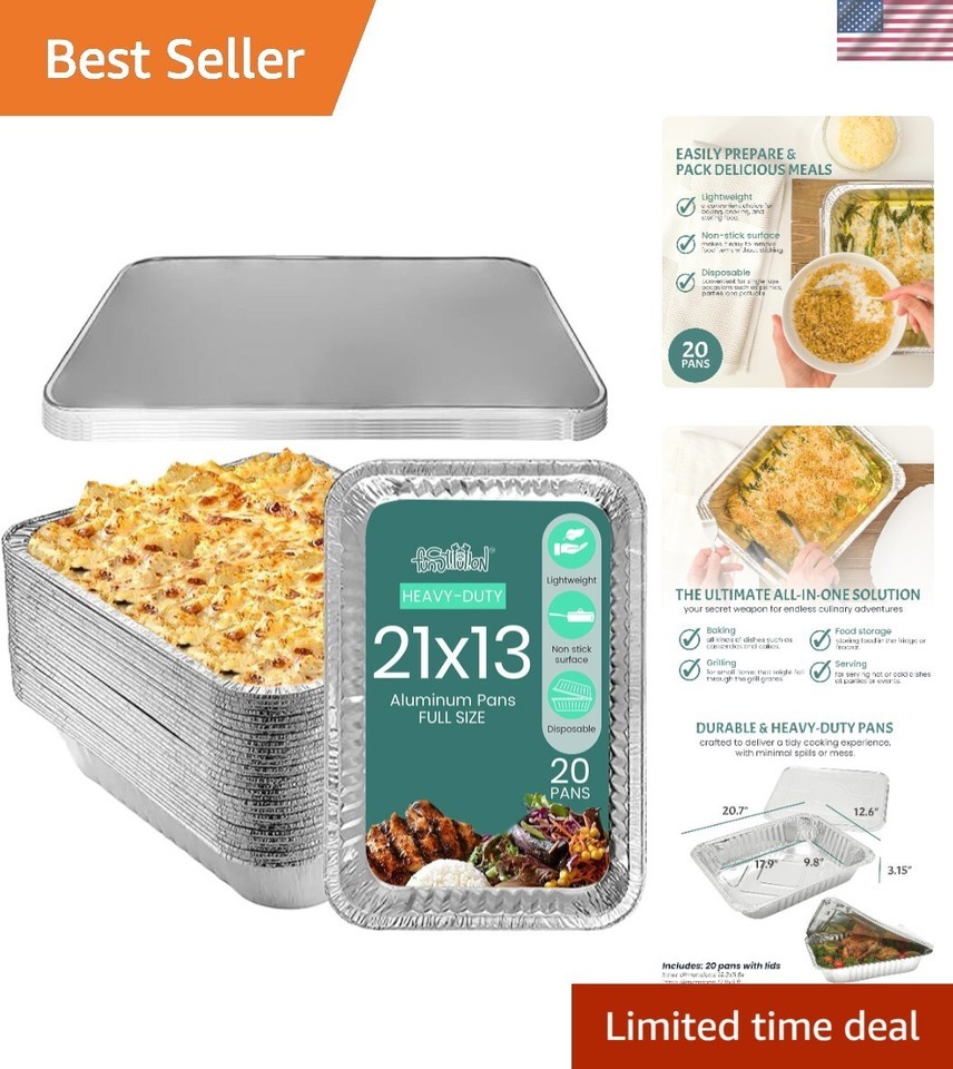 Full Size Large Aluminum Foil Pans 20 Pack - Full Size Large 21x13 Tin Foil Pans with High Heat Conductivity - Disposable Cookware For Baking, Grilling, Cooking, Storing, Prepping