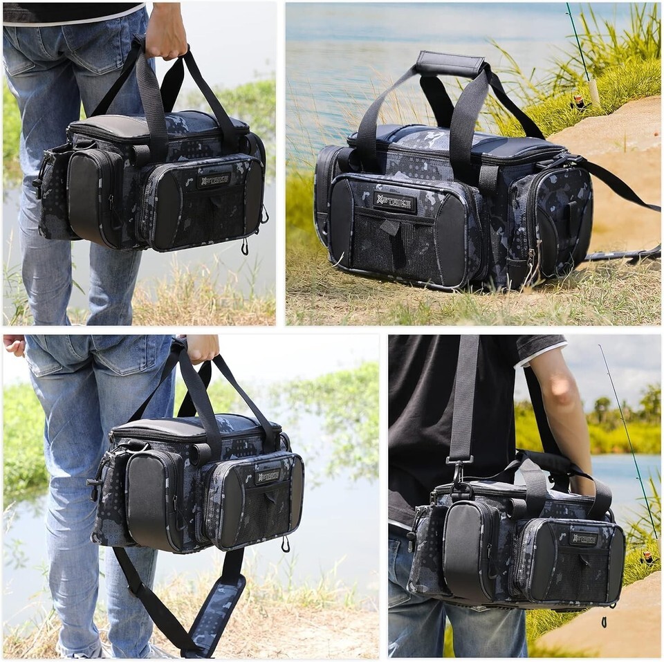 Fishing Bag - Waterproof Storage with 4 3600 Tackle Box, Saltwater Freshwater Shoulder Bag for Camping, Hunting, Hiking, Travel