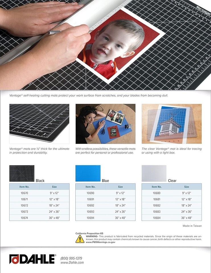 Vantage See-Through Premium Self-Healing Cutting Mat, 24"x36", 1/2" Grid, 5 L...
