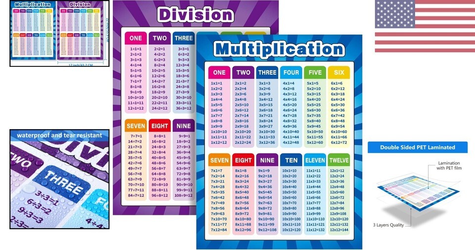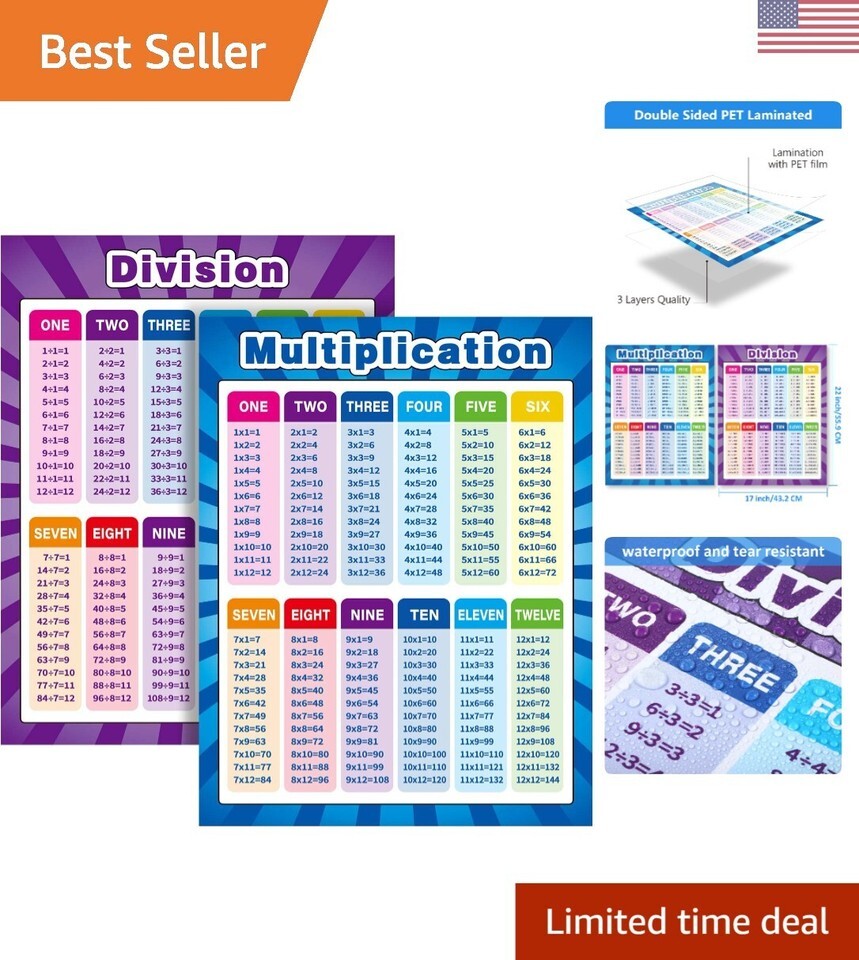 Looking for engaging classroom tools to help children learn basic math concepts? Our Large Multiplication and Division Educational Charts are the perfect solution. With vibrant colors, durable quality, and delightful illustrations, these posters will make learning fun and engaging for children of all ages. Plus, they are reusable and easy to clean, making them a great addition to any classroom or homeschooling environment.