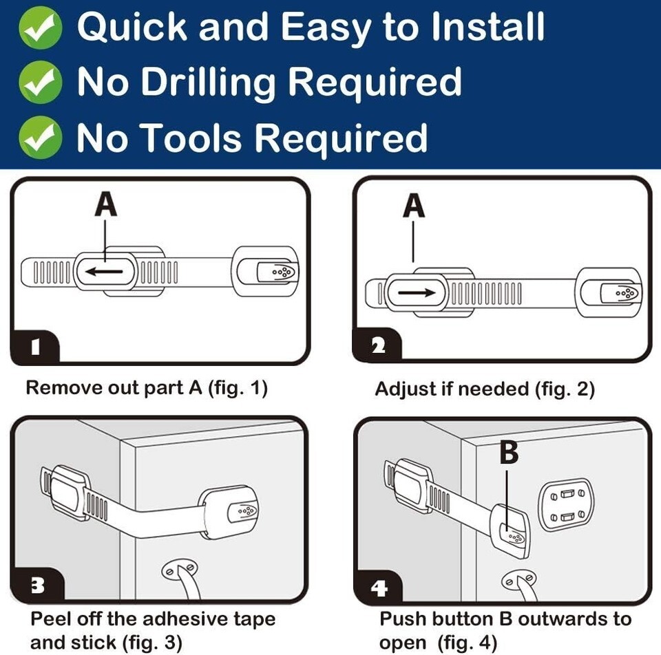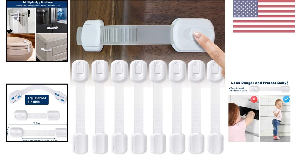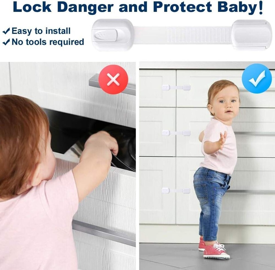 Are you worried about your curious kids exploring dangerous areas of your home? Our Multi-Use Safety Cabinet Locks are the perfect solution to keep your little ones safe. Made of high-quality materials and featuring strong adhesive, these locks are easy to install and remove without causing any damage to your furniture. With adjustable strap length and versatile use, you can protect your child from harm in any room of your home. Don't compromise on safety - choose our Multi-Use Safety Cabinet Locks today!