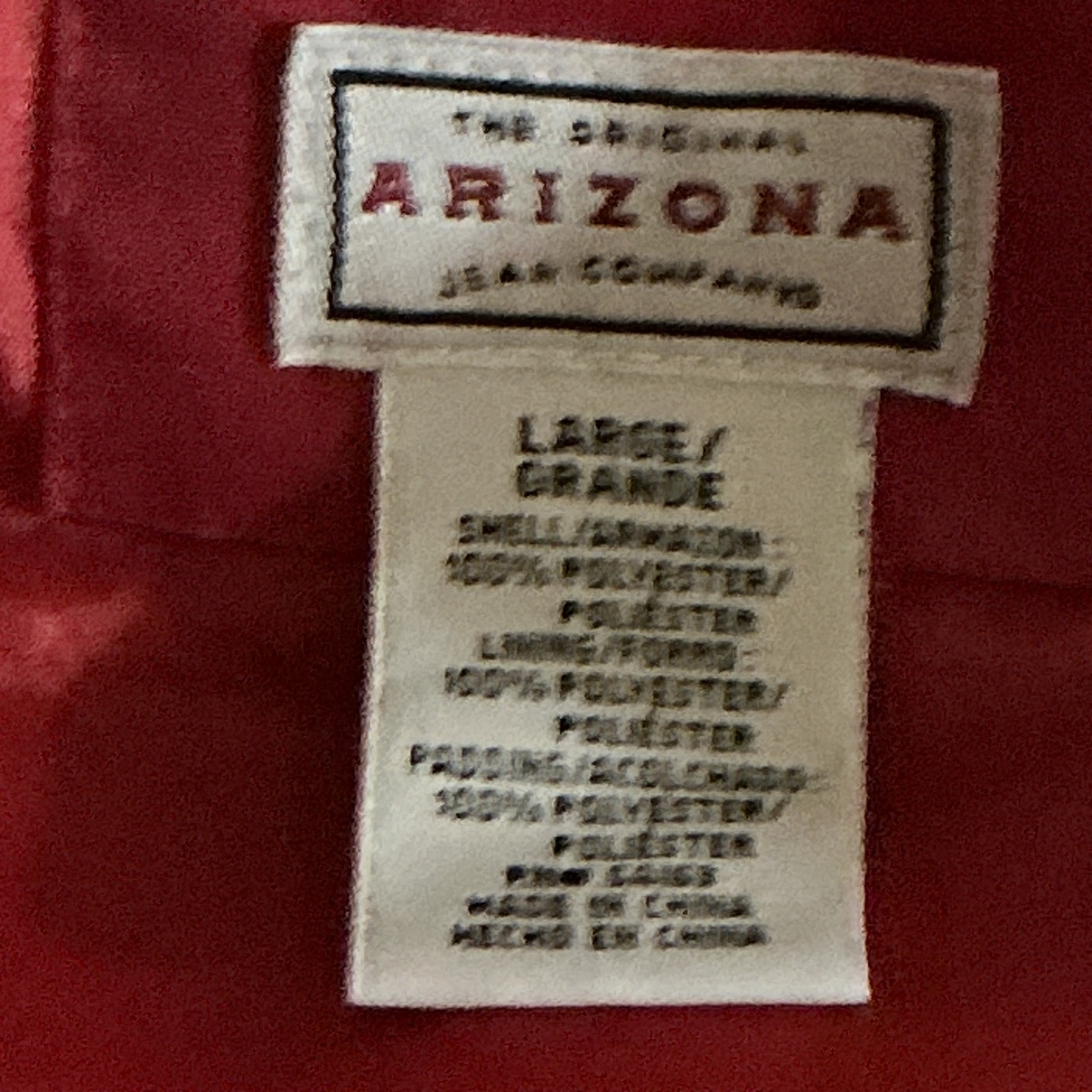 Size on tag: Large / Grande