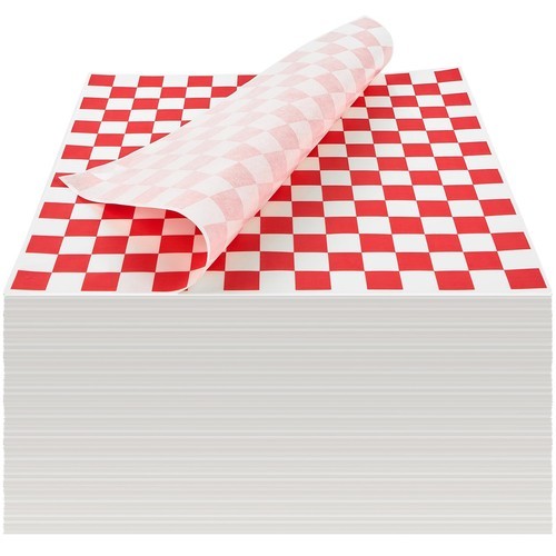 1000 Sheets of Red and White Checkered, Grease - Resistant, Basket Liners/Deli Paper with Labels
