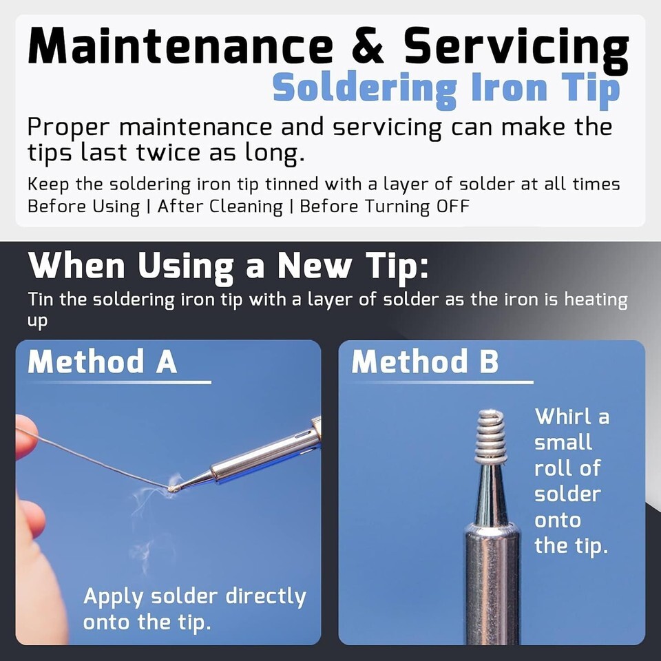 High-power Performance: This soldering iron kit's 110W heating element allows the soldering iron to heat up fast. You can set your desired temperature from 90C~480C(194F~896F). Precise double numerical display presents the set temperature and actual temperature at the same time for you to monitor real-time temperature changes.