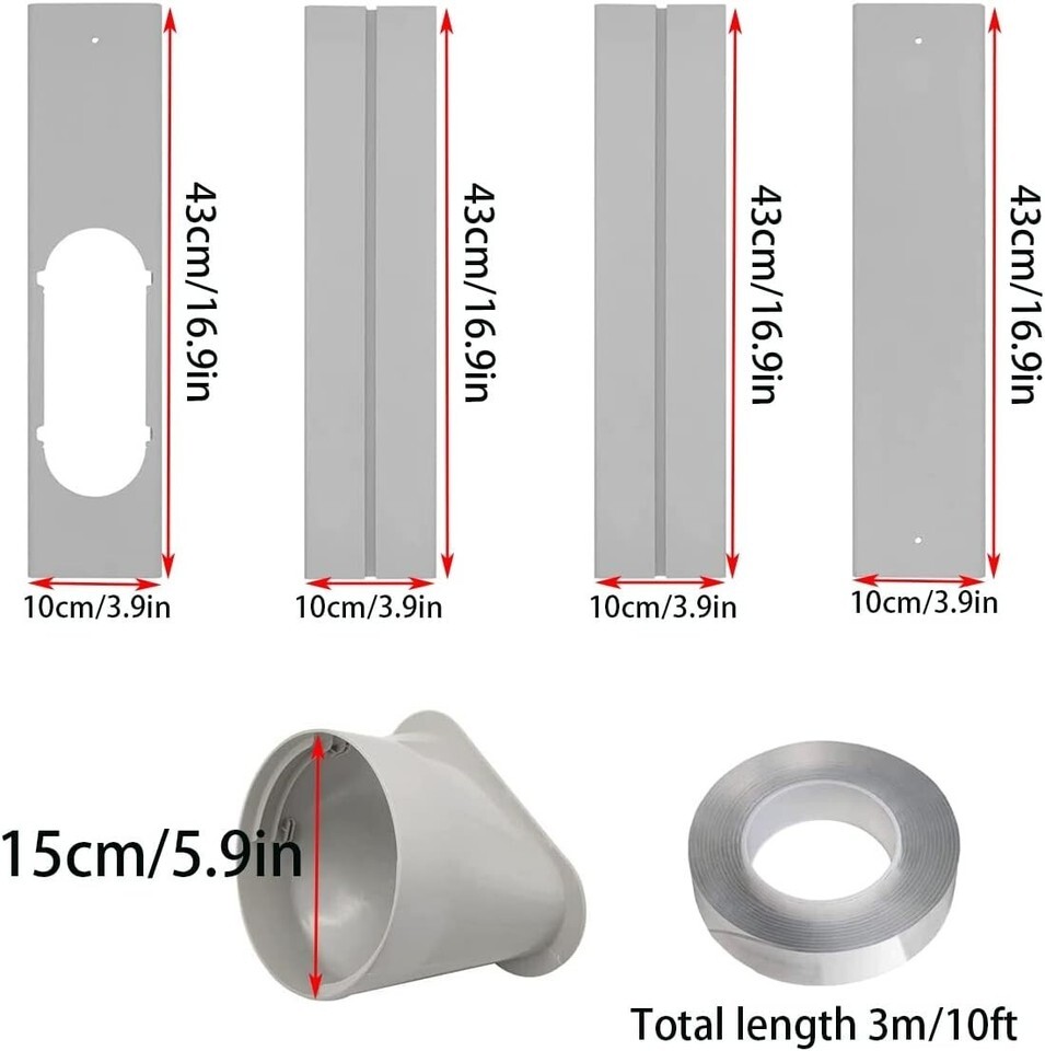 Features:Product Name:Portable Air Conditioner window KitMaterial: PVC/ABSApplicable model: All portable air conditioners with an air outlet of 15cm/" diameter.Adjustment length: ("~62")NOTE:Please Check Your Window Or Slide Door Height Before Check Hoses' Outer Diameter/Adapters' Internal Diameter Before BuyingPlease Allow Slight Dimension Difference Due To Different Manual Measurement.Package Includes:4 x 43cm/" Kit Plate1 x Exhaust Hose (Dia15cm/ x Exhaust Hose Adaptor1 x 3M Sealing Tape3 x Screws