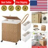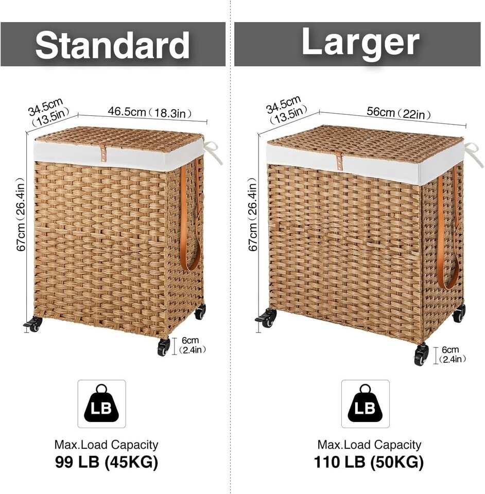 Laundry Hamper with Wheels, No Install Needed, 110L Divided Handwoven Hampers...