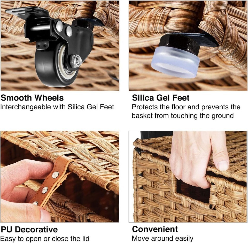 Handwoven Craftsmanship - The laundry hamper is meticulously crafted from durable synthetic rattan material, which is waterproof and moistureproof. The waterproof floor mat is added to ensure your clothing is not making contact with the floor. The bright natural finish and delicate weaving is suitable for any furniture design style and will work perfectly in your bedroom, bathroom or laundry room