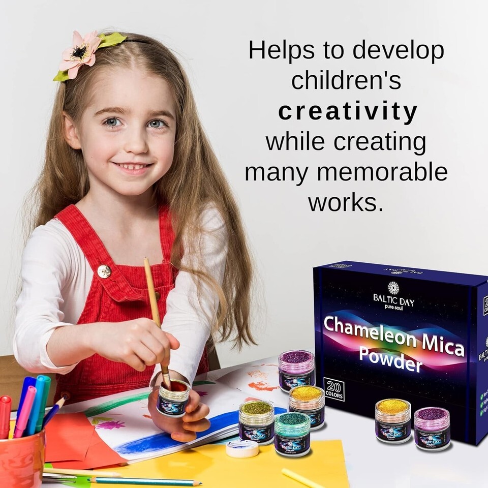 ? HOLOGRAPHIC MICA POWDER VERSATILITY - possibilities are endless. Ideal for DIY projects. Give a glowing and shimmering final touch to your painting or other artwork. Chameleon mica easily dissolves in UV resin and epoxy resin without clumping or forming lumps.