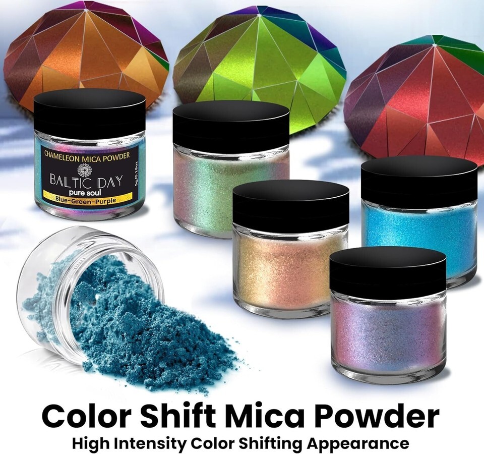 ? COLOR SHIFT MICA POWDERS - artists made highly pigmented and strong powders will give you the exact color you need! Vibrant pigments can be used for any project: Soap, Epoxy Resin, Homemade Slime, Candles, Bath Bombs, Polymer Clay, Car Freshies, Acrylic Paint, Nail Art, Lip Gloss/Balm, Color Shift Spray Paint.
