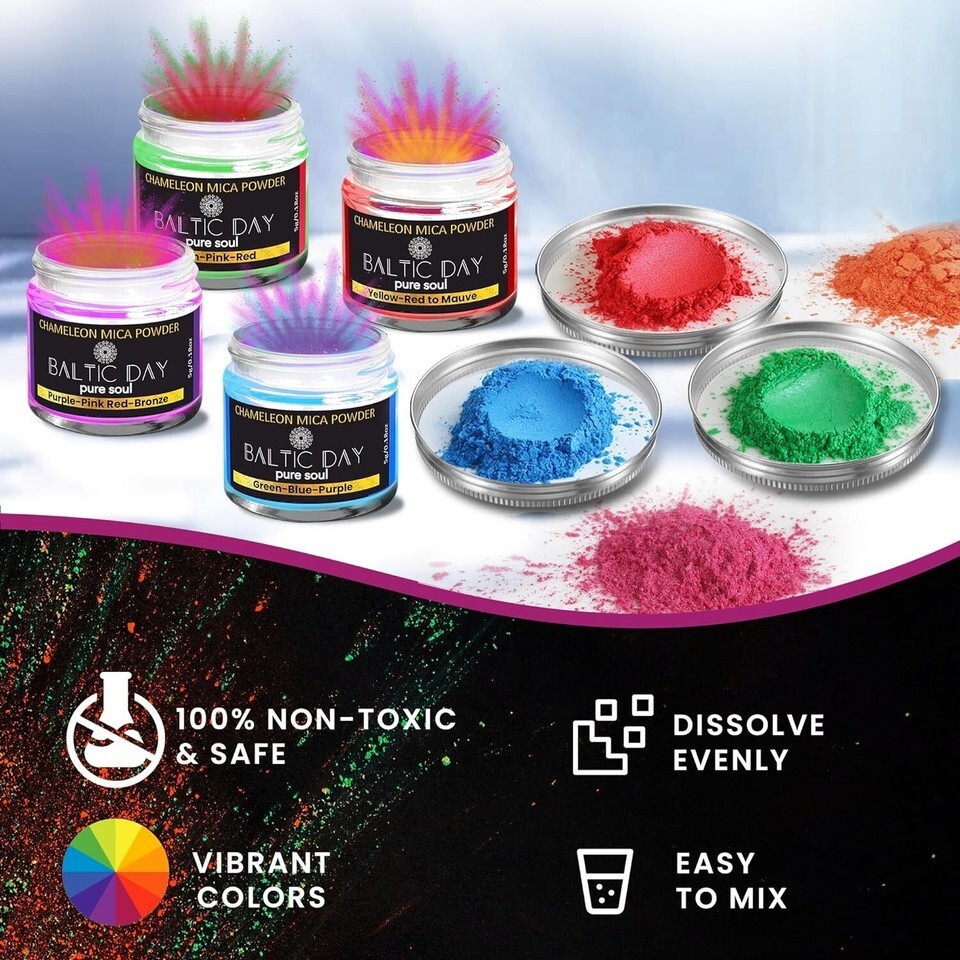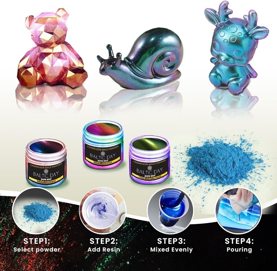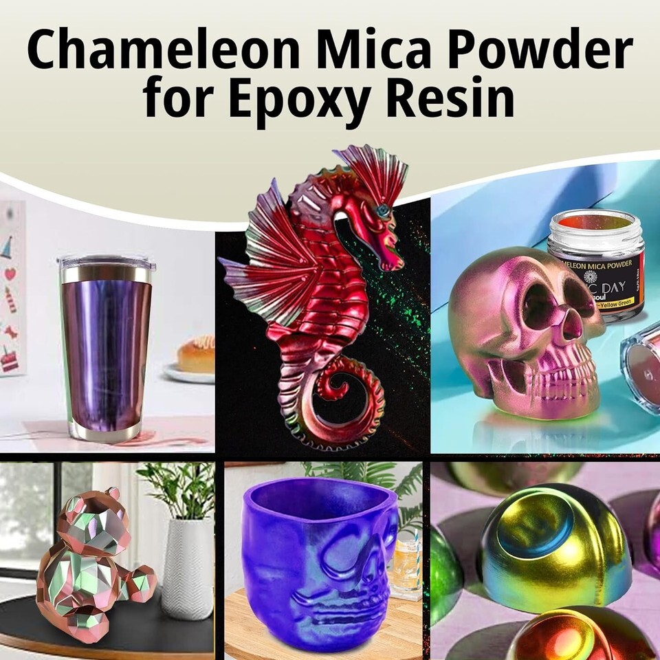 ? FOR EPOXY RESIN - with color-changing pigment, you can make any project shine with a holographic effect. Use it for Epoxy Resin, Tumblers Making, Painting, Paint Dye. Our chameleon pigment is often used as a resin mica powder for Epoxy Jewelry, a professional quality will make your project stand out from others!