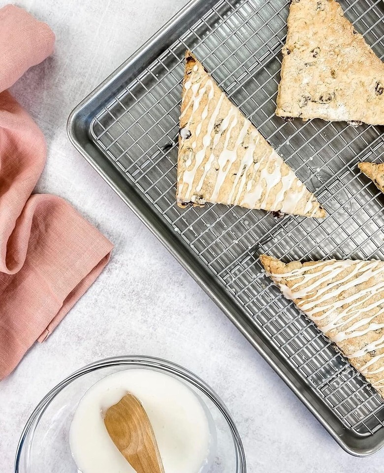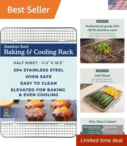 The nonstick half sheet pan and bakeable non-stick half sheet cooling rack set includes a 17. 25 x 12. 25 inche half sheet pan and a 16. 75 x 11. 5 half sheet cooling rack. This classic kitchen baking combo is the perfect set for home bakers looking to make freshly baked cookies, cakes, perfect bacon and scones that bake evenly, cool uniformly, and come out tasting great. The non-stick half sheet cooling rack fits seamlessly inside the non-stick half sheet pan and provides home bakers with an easy way to add the perfect glaze or finish to your homemade baked goods. Simply place your oven safe cooling rack in the pan, add your items on top of the cooling rack, and you are ready to start baking like a professional. The cooling rack is easy to use and features a steel cross wire design and 6 raised feet, which elevate your cookies, breads, cakes, and scones into a raised position. This raised position promotes uniform cooling among your baked items. The nonstick coating on both the half sheet and the cooling rack means that your baked goods will release quickly and easily, leaving your cookie bottoms crispy and intact! Both the half sheet and the cooling rack are oven safe up to 450 degrees Fahrenheit. Handwashing is the preferred method of cleaning the half sheet pan. The cooling rack is not dishwasher safe and it is recommended that you clean the rack using a soft sponge or kitchen brush to remove food particles. professional grade bakeware helps everyday home bakers produce professional grade baked goods. bakeware is long-lasting, durable, and reliable. is a Bundy family owned company, based in the greater Pittsburgh, Pennsylvania area that has been producing high performance bakeware for over 50 s.
