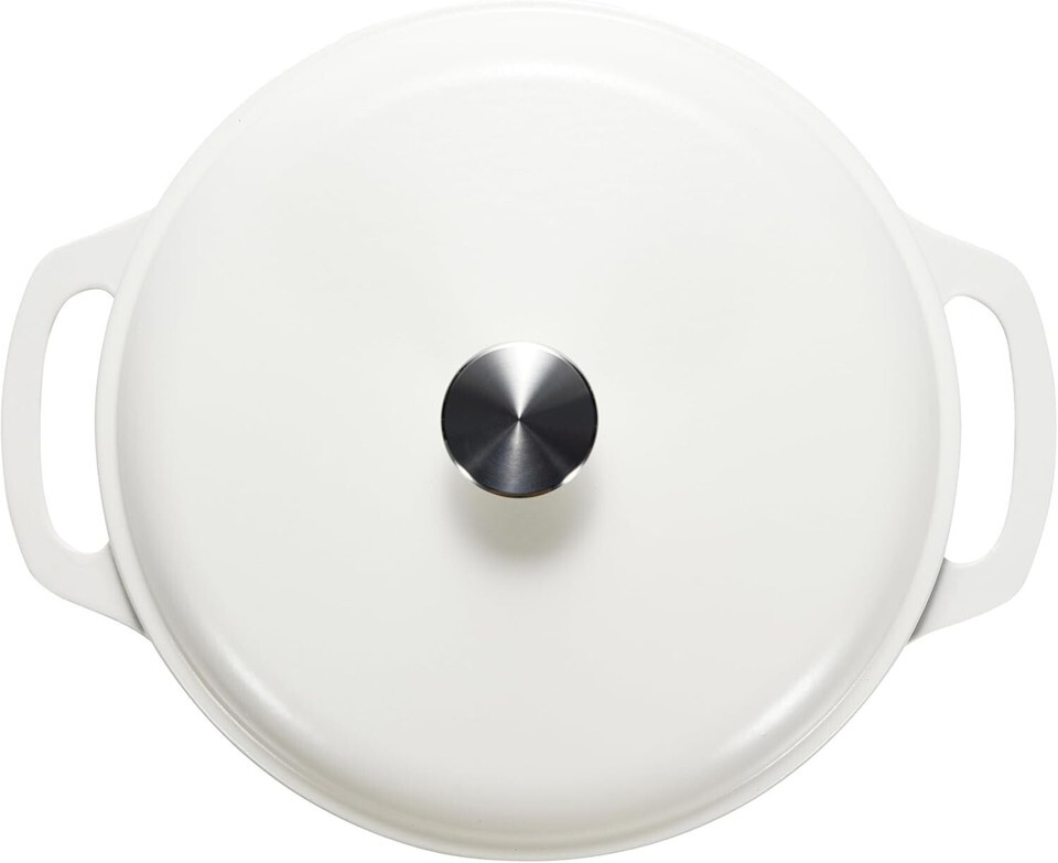 Cast Iron Dutch Oven Pot with Lid, Enameled, Round, Dual Handles, Heavy-Duty, Large, , Matte White