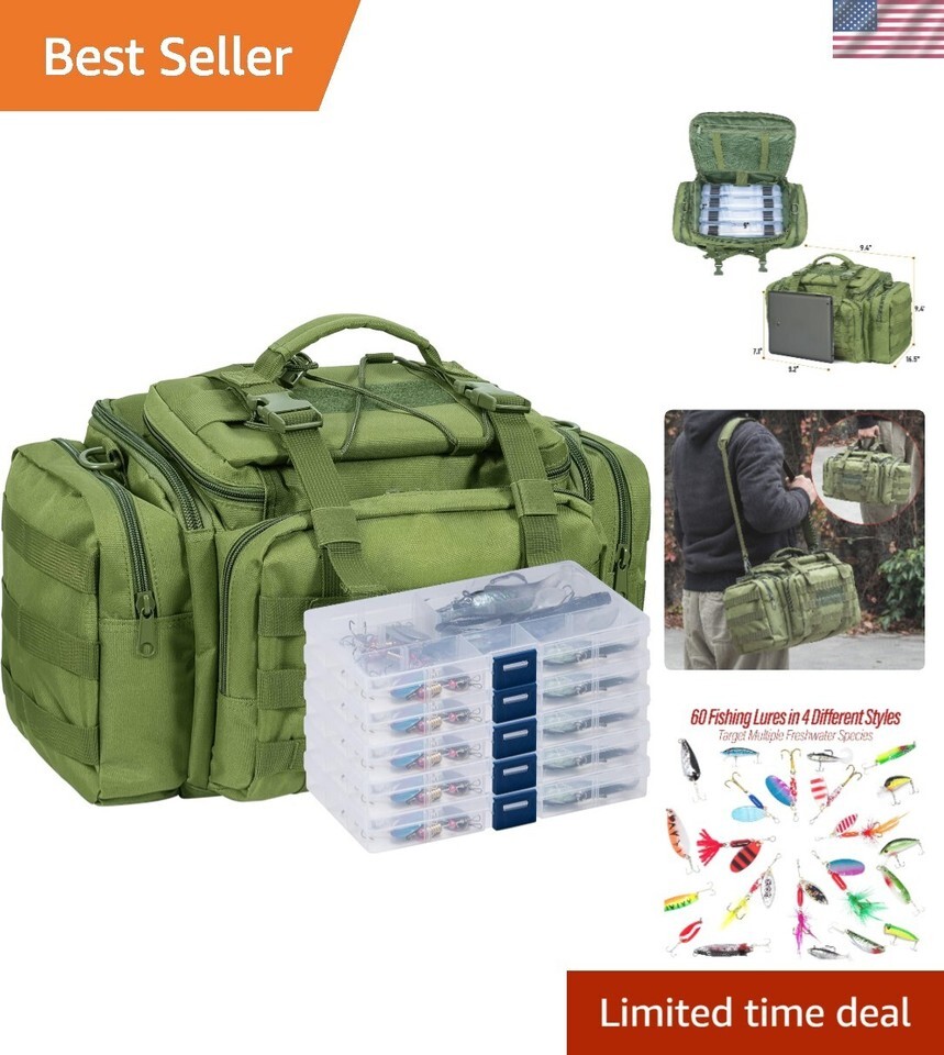 Fishing Tackle Bag 5 Boxes with 60 Lures Included Loaded Stocked Tackle Box Set Spinner Lures Kit Freshwater Gear Equipment